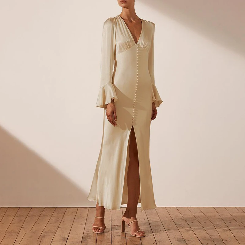 Celmia атласное шелковое платье-макси с расклешенными рукавами, осе...
