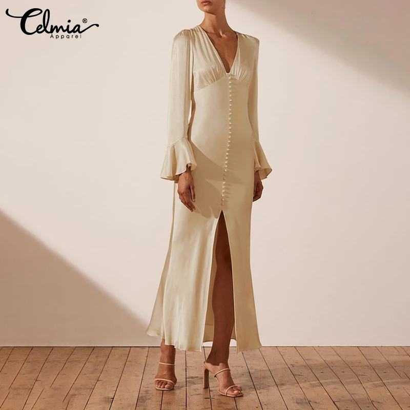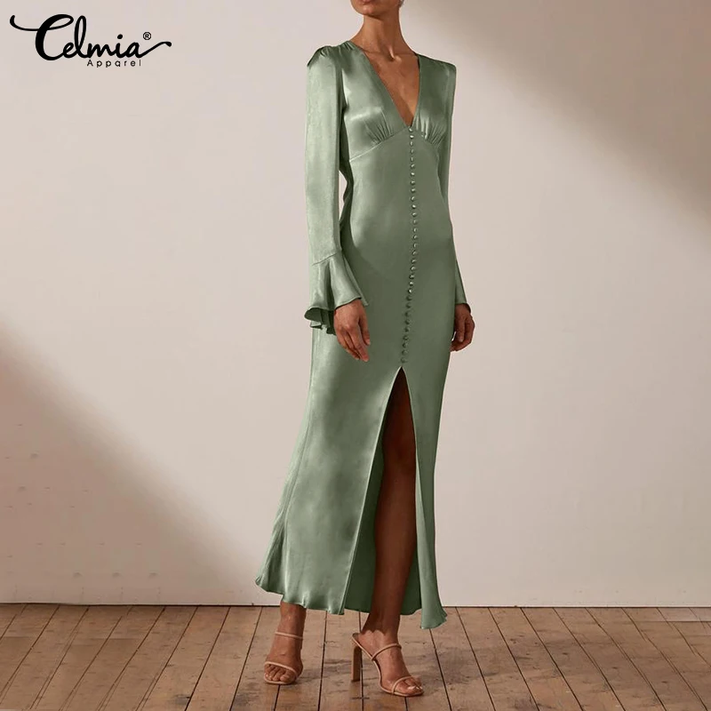Celmia 2022 модное женское атласное элегантное платье с V-образным ...
