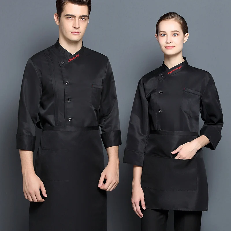 Униформа шеф-повара, с длинным рукавом, для женщин и мужчин, для кухни, кейтеринга, черное пальто для повара, пекарня, рабочая одежда