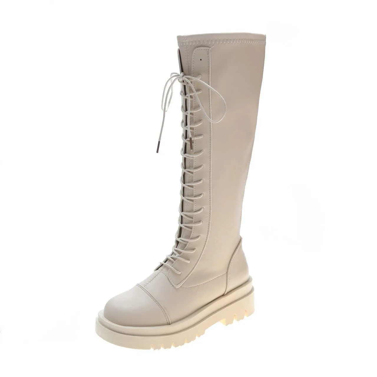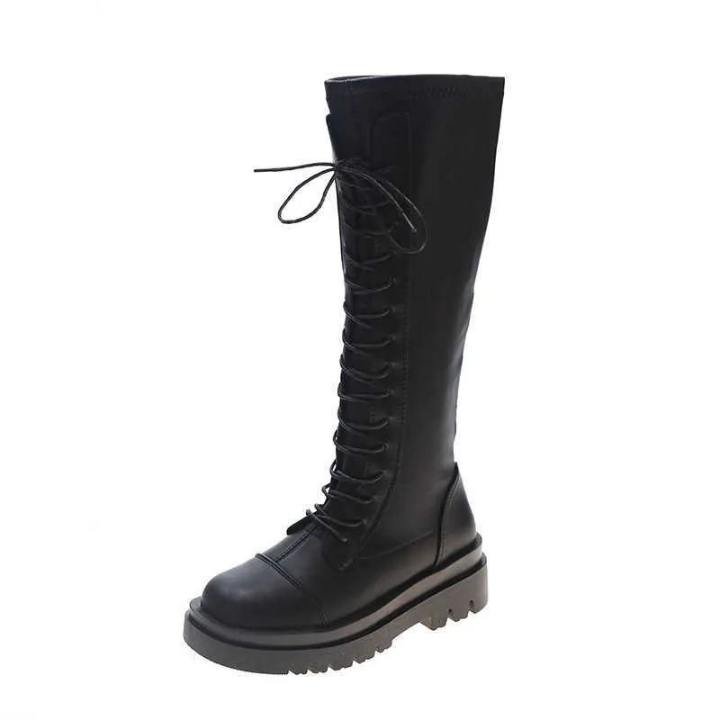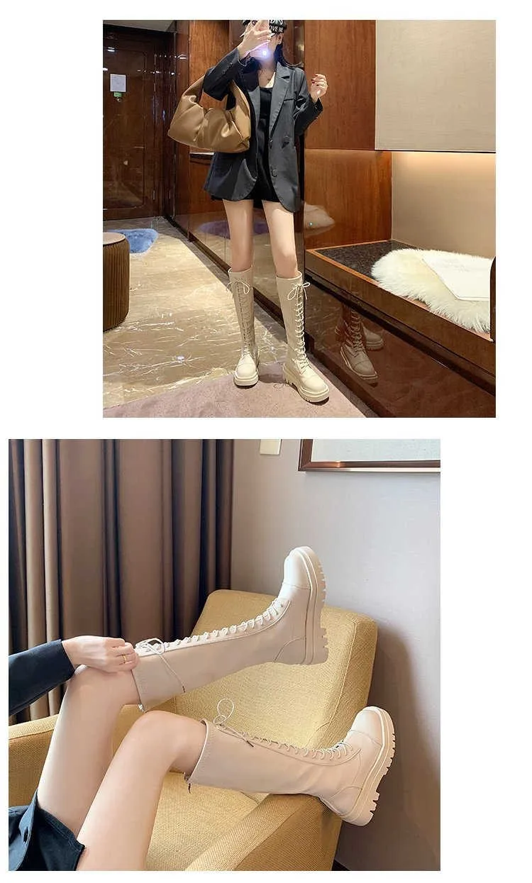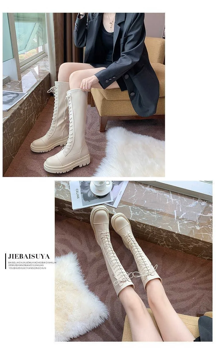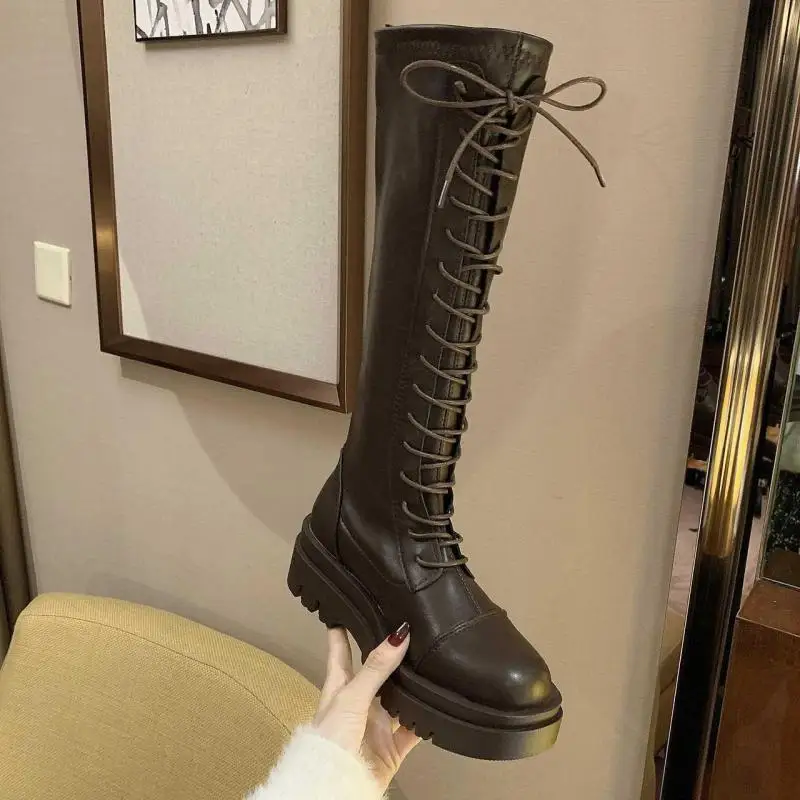 Женские ботинки челси на шнуровке, высокие сапоги до колена из иску...