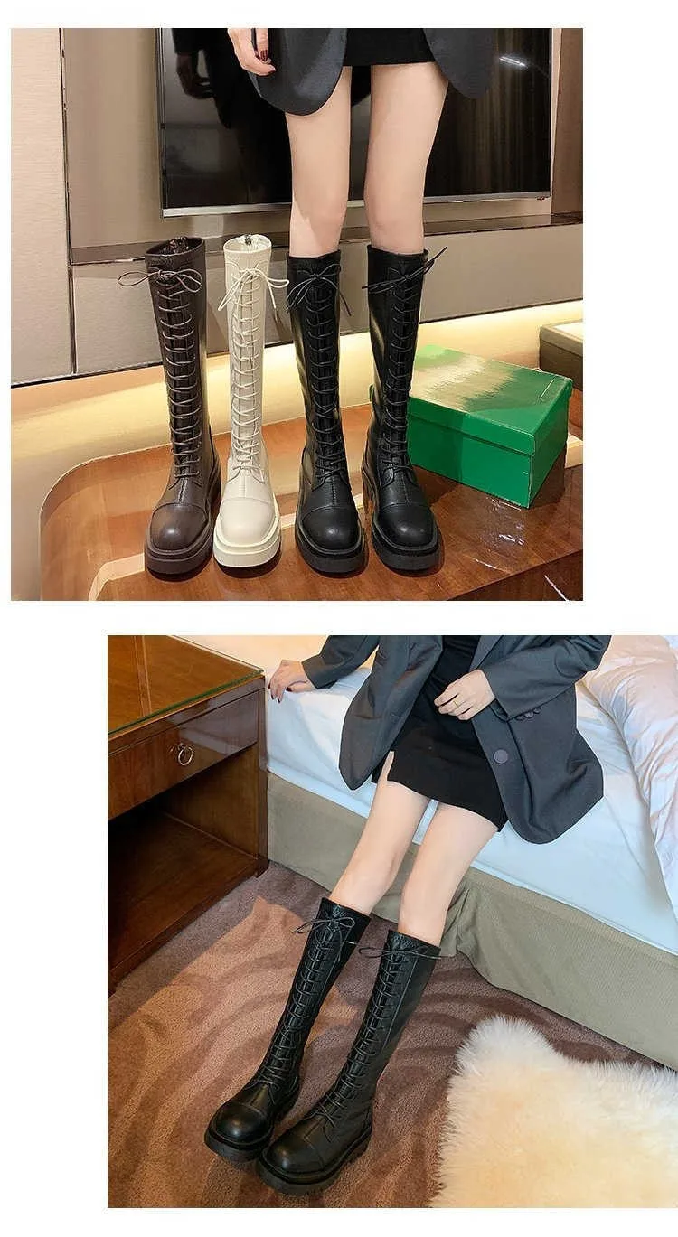 Сапоги до колена из искусственной кожи на толстой подошве, женские ...