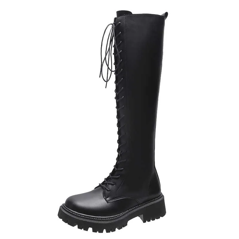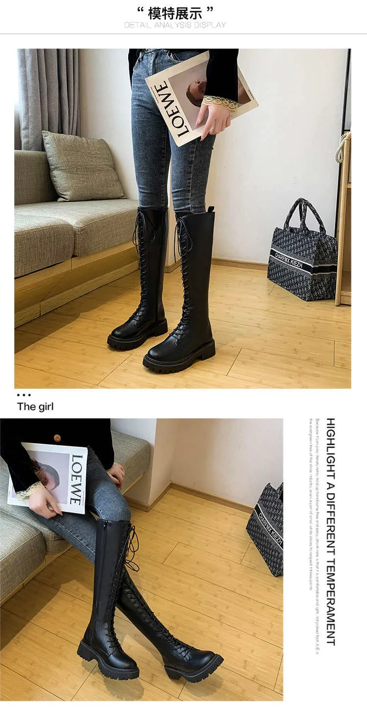 Женские ботинки челси на шнуровке, высокие сапоги до колена из иску...