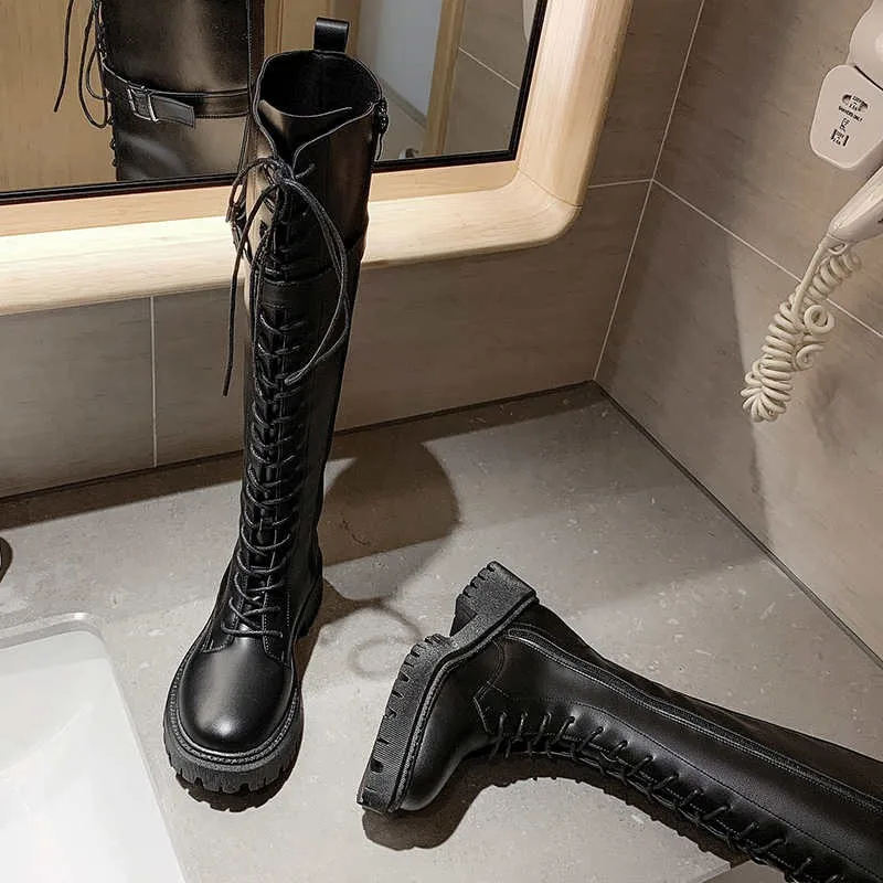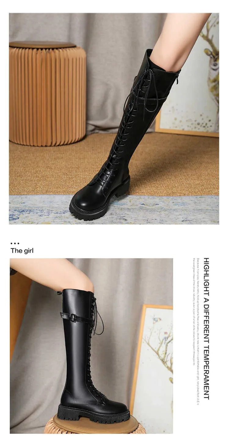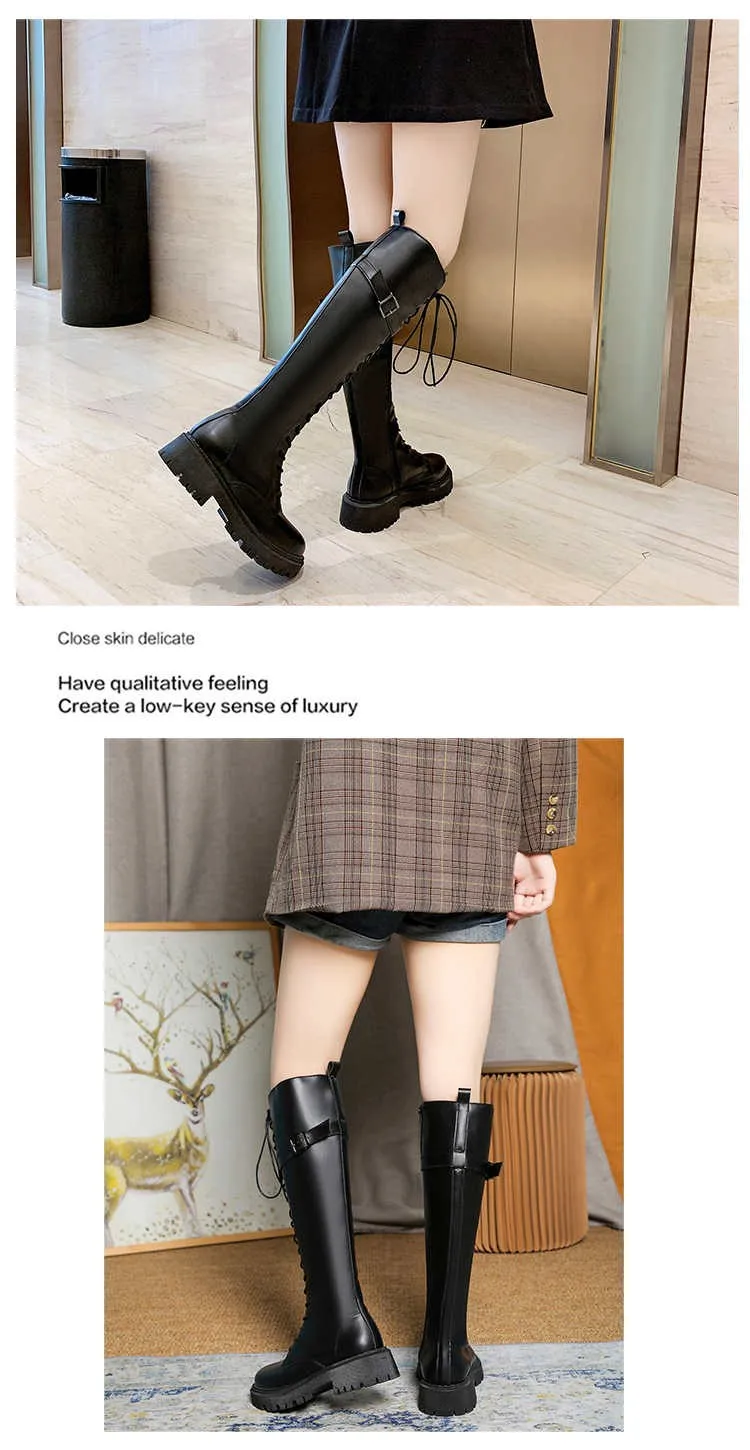 Женские сапоги до колена, однотонные сапоги на высоком каблуке, с ремешком и пряжкой, на шнуровке, модная обувь на зиму