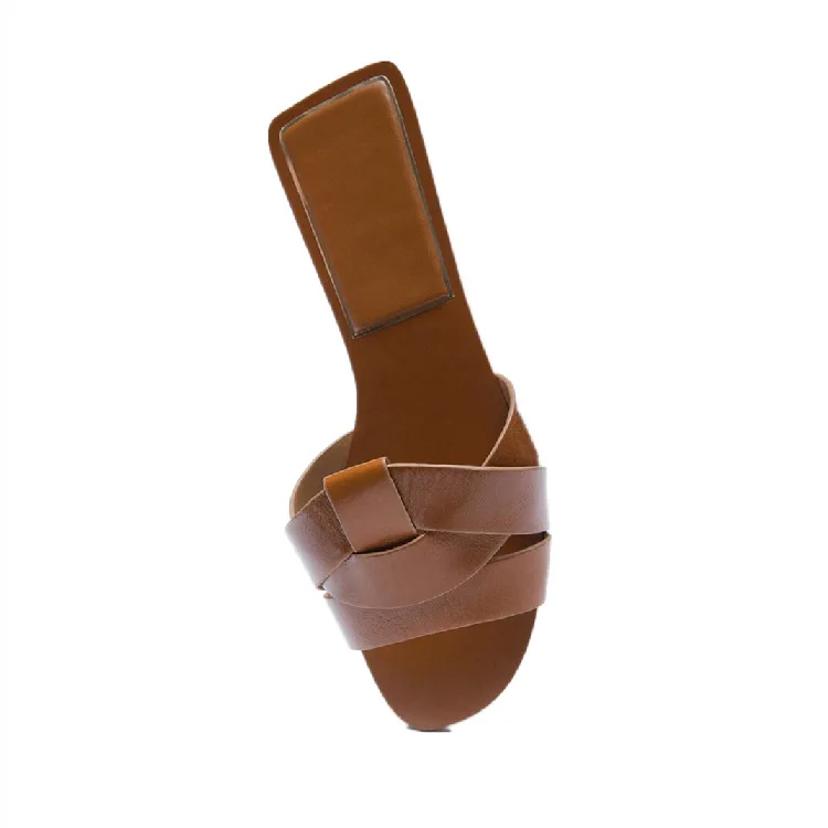 Женские пляжные шлепанцы ZARZ, коричневые кожаные сандалии на плоск...