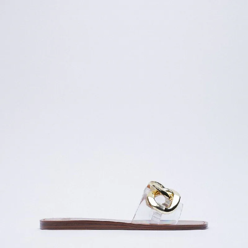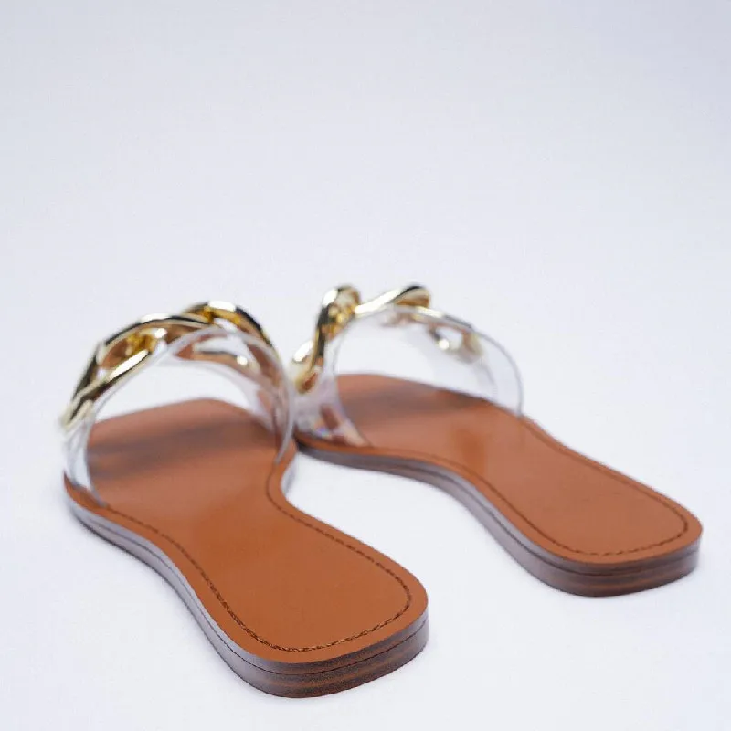 Женские сандалии на плоской подошве, прозрачные, с металлической цепочкой