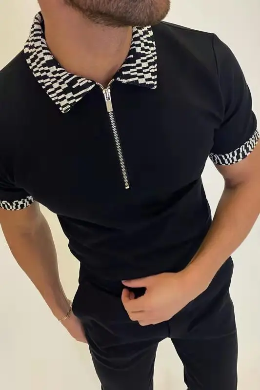 Мужская свободная рубашка-поло на молнии, с коротким рукавом