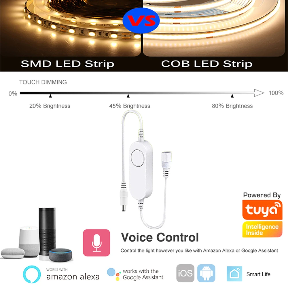Посылка 2 включает в себя: 1x12 В COB Светодиодная лента, 1 x ручное затемнение 1 x адаптер питания