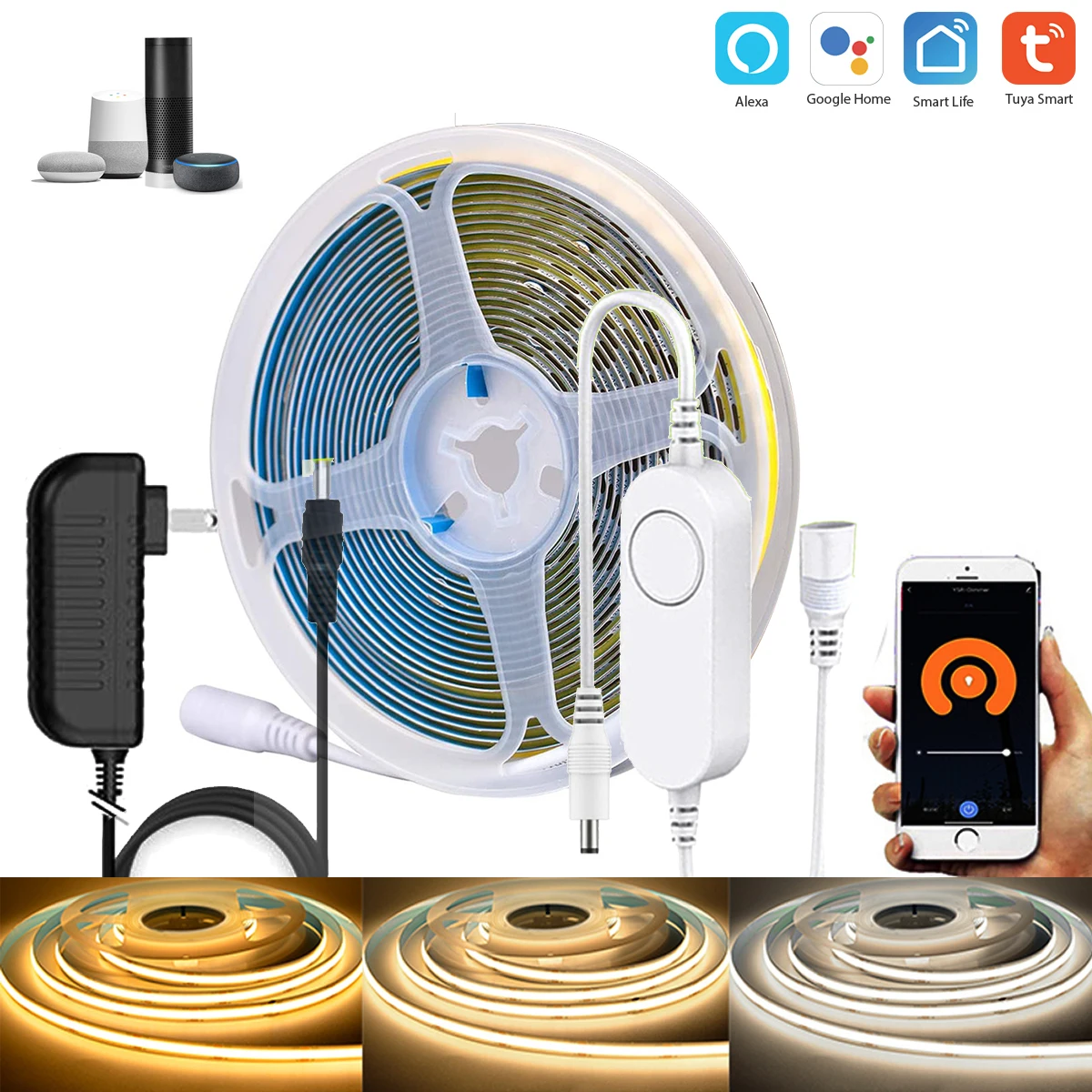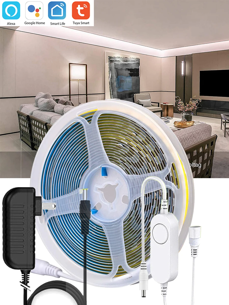 Посылка 4 включает в себя: 1x12 В COB Светодиодная лента, 1 x адаптер питания, 1 x пульт дистанционного управления TUYA WIFI