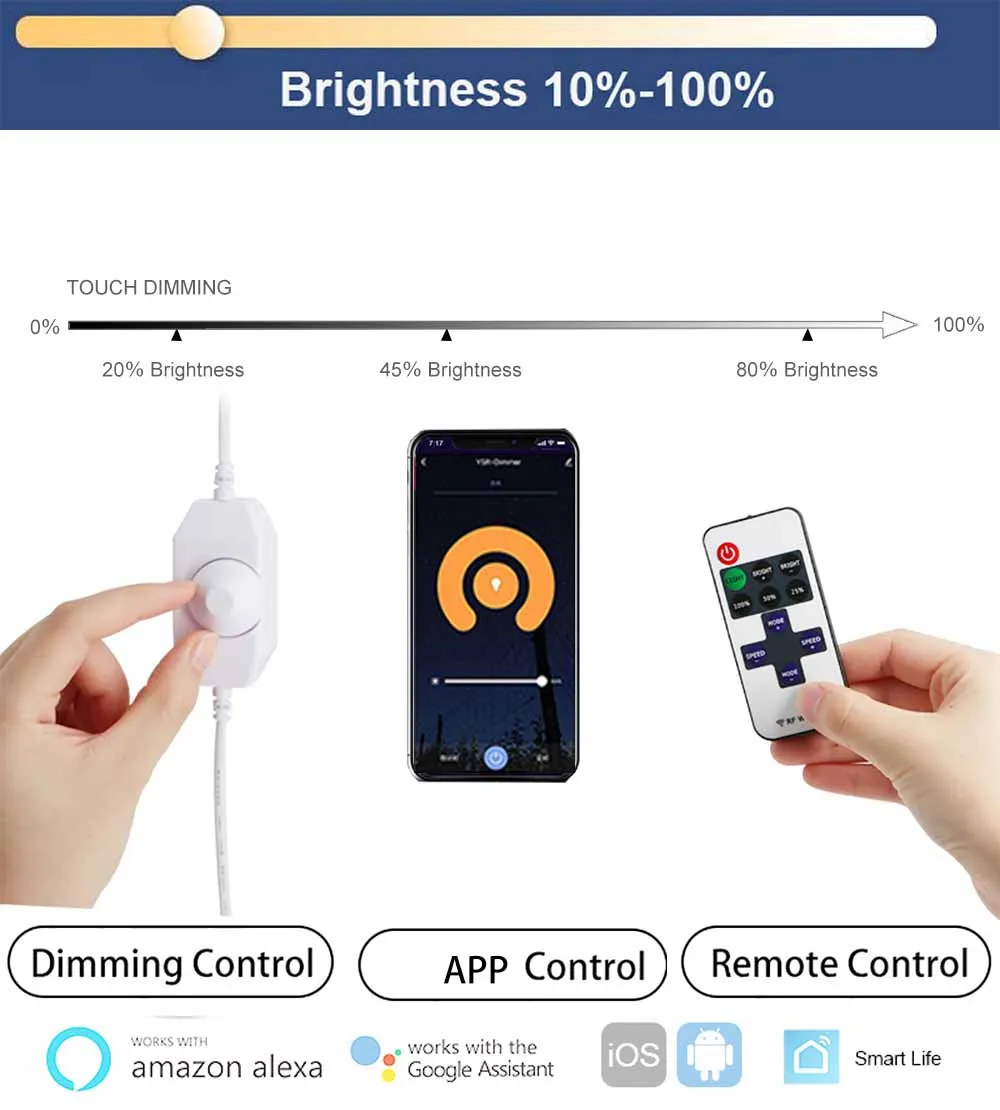 Продукт может управляться удаленно через Alexa Google voice и смартфон.* Нет необходимости в хосте, прямое подключение к Wi-Fi, дистанционное управление приложением, таймер.* Интеллектуальная связь сцен, предварительное выполнение сцен с одной кнопкой.* Поддержка Amazon Alexa Echo и голосового управления Google дома.* Поддержка совместного использования устройств и многоиндивидуального контроля.* Ультра-низкое энергопотребление, энергосбережение.Где используется этот контроллер?Он может использоваться в развлекательных, вечерние, свадебные, бара, бальных, кинотеатральных, развлекательных площадках.Он может использоваться в автомобиле, рекламной доске, освещении, декоративной подсветке телевизора, подсветке компьютера.Как его использовать?1. Подключите этот Wi-Fi полосы светильник контроллер к светодиодный светильник полосы через 4-контактный разъем, а также Подключите к источнику питания через порт постоянного тока с адаптером питания из светильник полосы.2. Найдите «Smart Life» в вашем app store или отсканируйте qr-код в руководстве пользователя, чтобы загрузить и установить его.3. Зарегистрируйте свою учетную запись Smart Life.4. Перейдите в приложение «smart life» на вашем телефоне, нажмите на кнопку «Прямое подключение устройства контроля ", затем вы можете контролировать ваш светодиодный светильник полосы с помощью вашего телефона.Совместимость с Alexa Che и Google AssistantAlexa, включить/выключить {светильник name}Alexa, установите {светильник name} до 1%-100%Alexa, dim/brighten {светильник name}Alexa, увеличение/уменьшение {светильник name}Посылка в комплекте