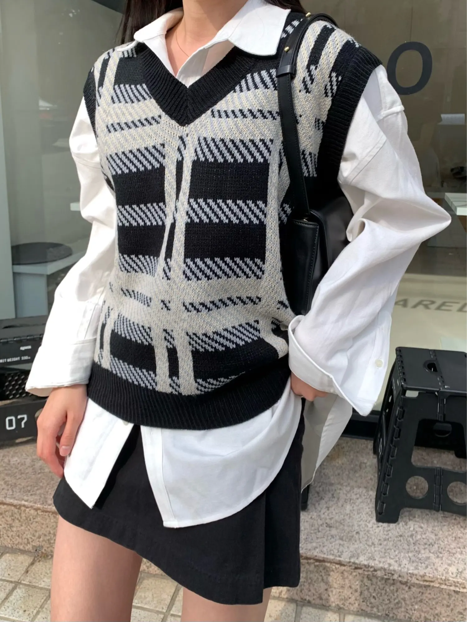 Женский свитер, жилет с V-образным вырезом, мягкий теплый модный клетчатый свитер без рукавов, универсальные свободные вязаные Ретро Свитера в Корейском стиле для женщин