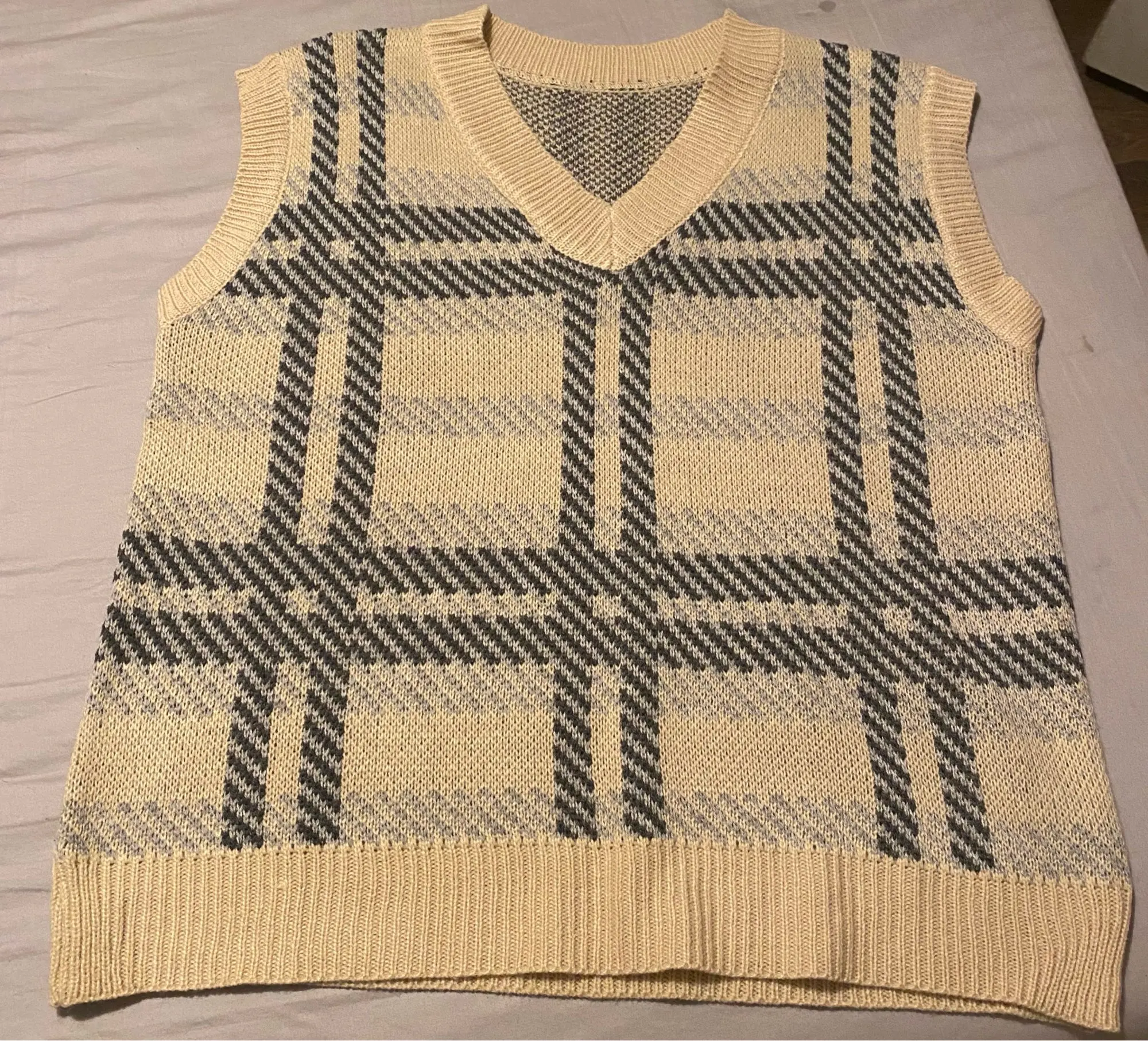 Рисунок на картинке не совпадает с реальностью, а также цвет отличается, он более желтый. Качество хорошее, на мой размер М XL село как L, если вы понимаете о чём я. Жилетка нормальная, но я ожидала совсем другой внешний вид, только из-за этого 3 звёзды.