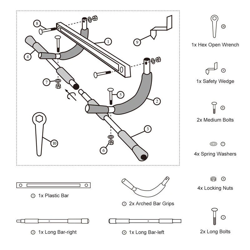 Подходит для большинства дверных проемов: поставляется в единицу упаковки размером 20x3,25x8 дюймов, подходит для дверных рам шириной до 35,4 дюйма. Он используется для тренировки в помещении, пожалуйста, имейте в виду, что дверной проем должен быть шириной 24 - 32 дюйма для размещения бара
