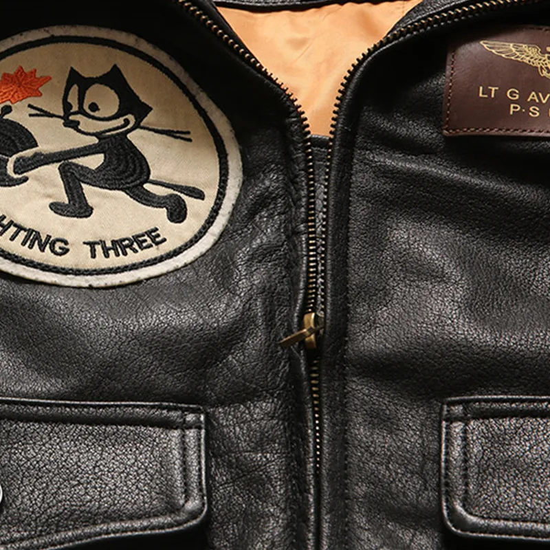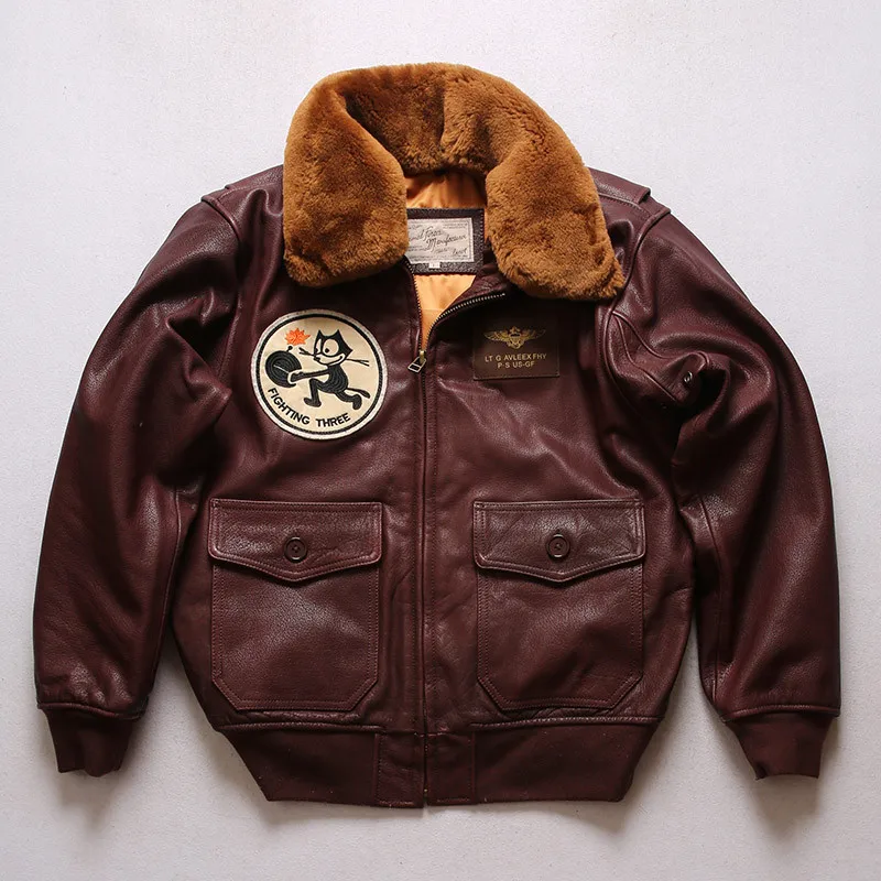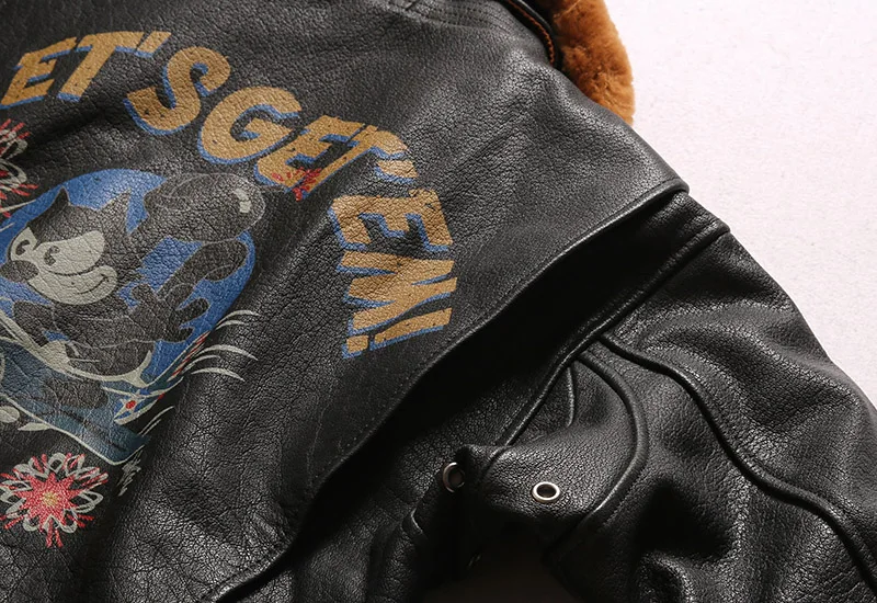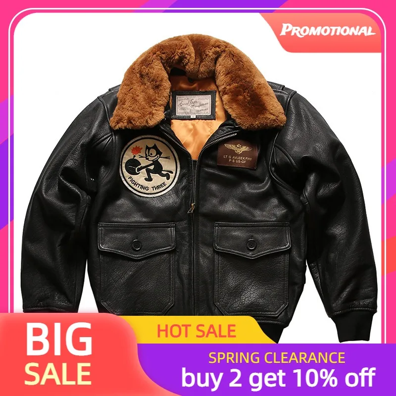 2022 Черная мужская кожаная куртка в стиле милитари, Европейский Размер 3XL, Натуральная Воловья кожа, зимнее теплое короткое пальто с авиацией
