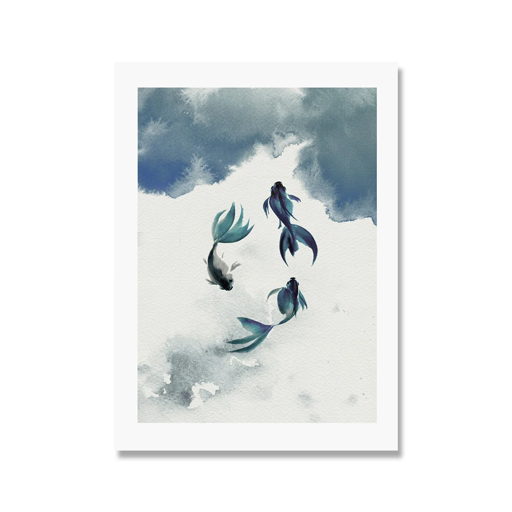 Картина Настенная для ванной, холст с рыбой, Морской абстрактный по...