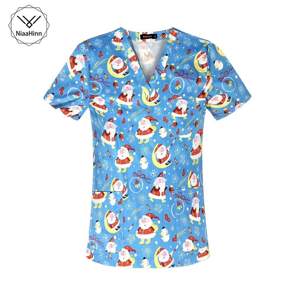 Питомцы для медсестер с рождественским принтом, высокое качество, оптовая продажа, спа, дышащая медицинская униформа для медсестер, модная облегающая унисекс Одежда для женщин
