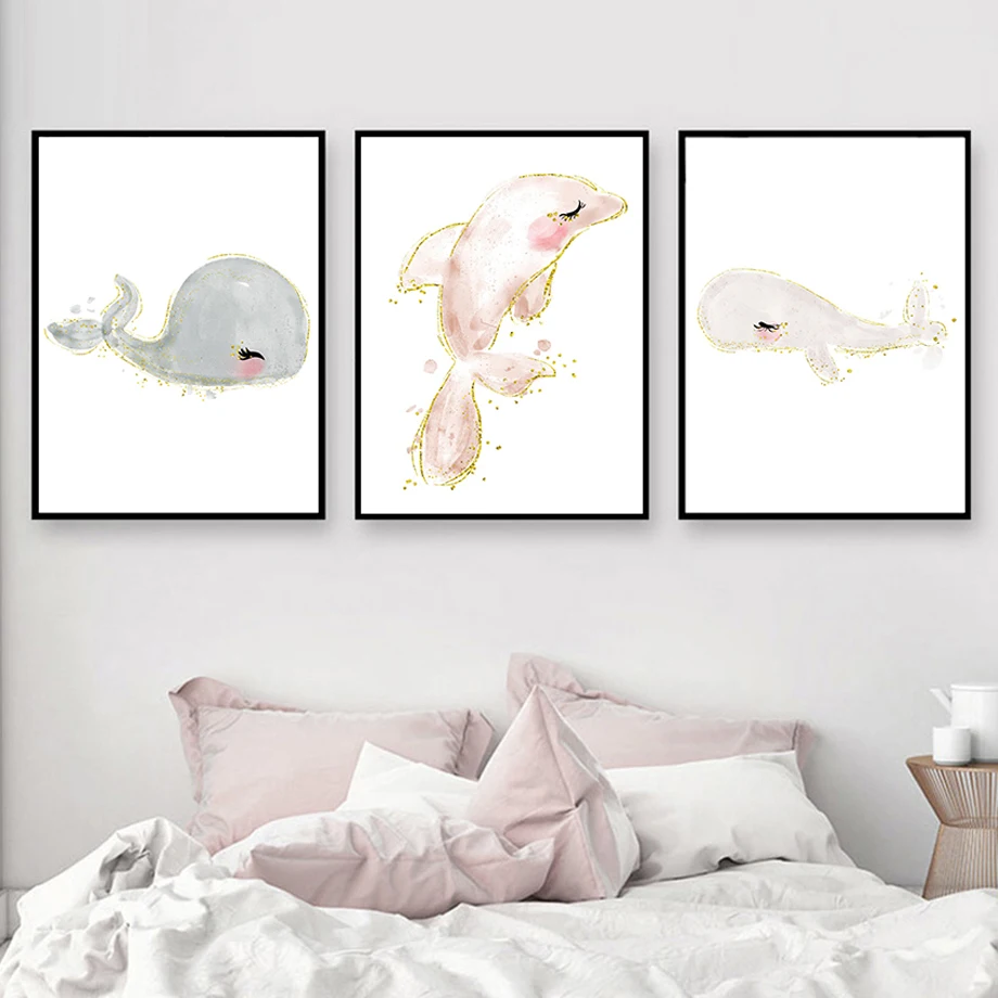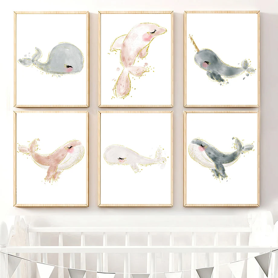 Картина на холсте с изображением тигра, пингвина, Кита, птицы, лоша...