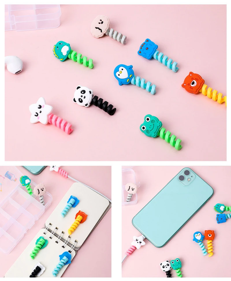 Мультяшный спиральный протектор кабеля, провод передачи данных, сил...