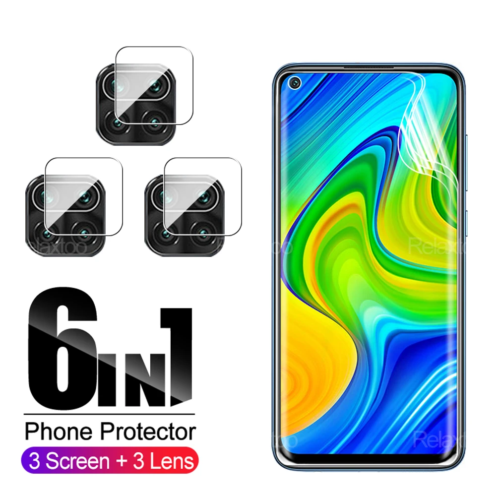 Передняя Гидрогелевая пленка 6 в 1 + Защитное стекло для объектива камеры для экрана Redmi Note 9 9s 9T 9 Pro Max 10 Pro 10s HD полное покрытие