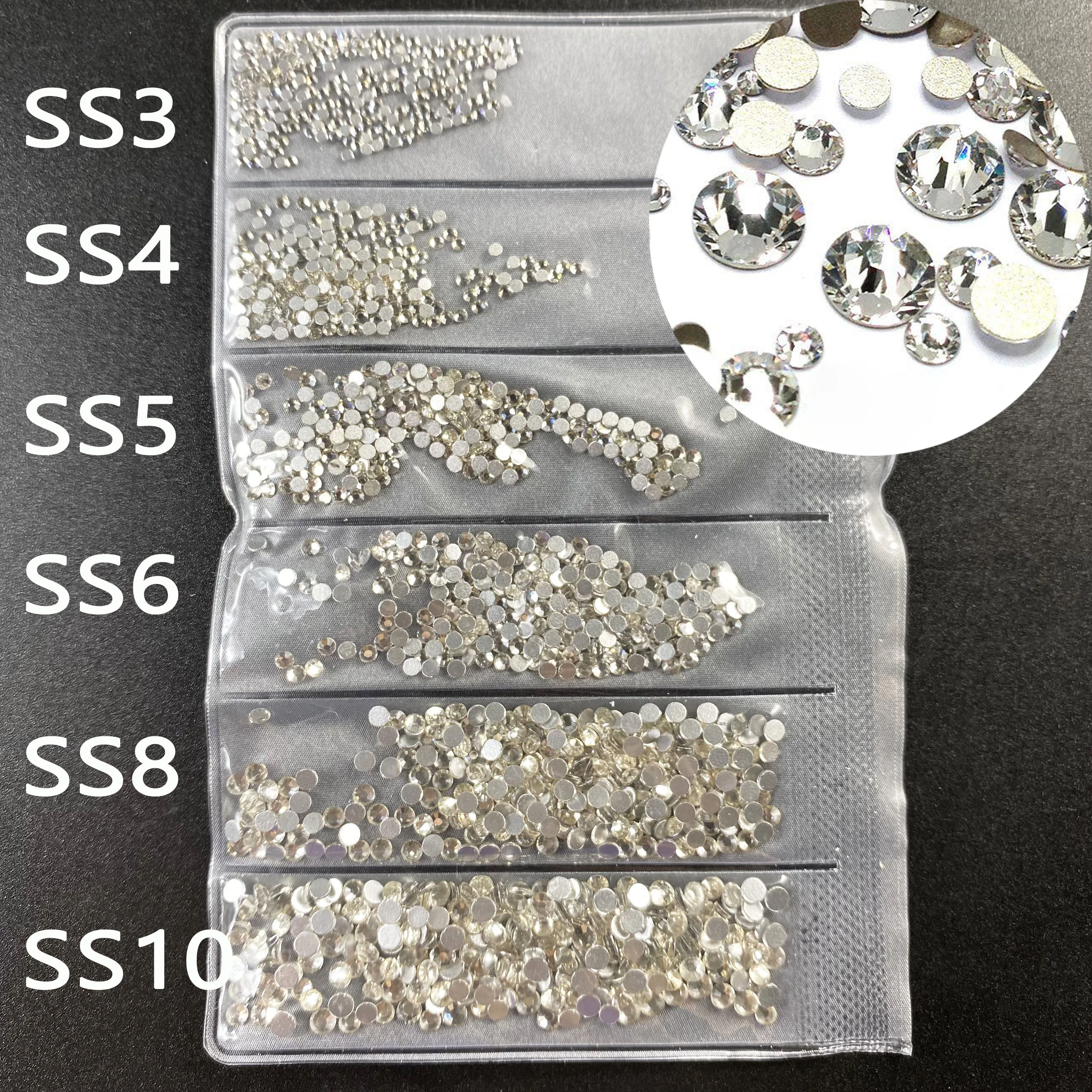 Тип: круглые стразы с плоским основанием без горячей фиксации