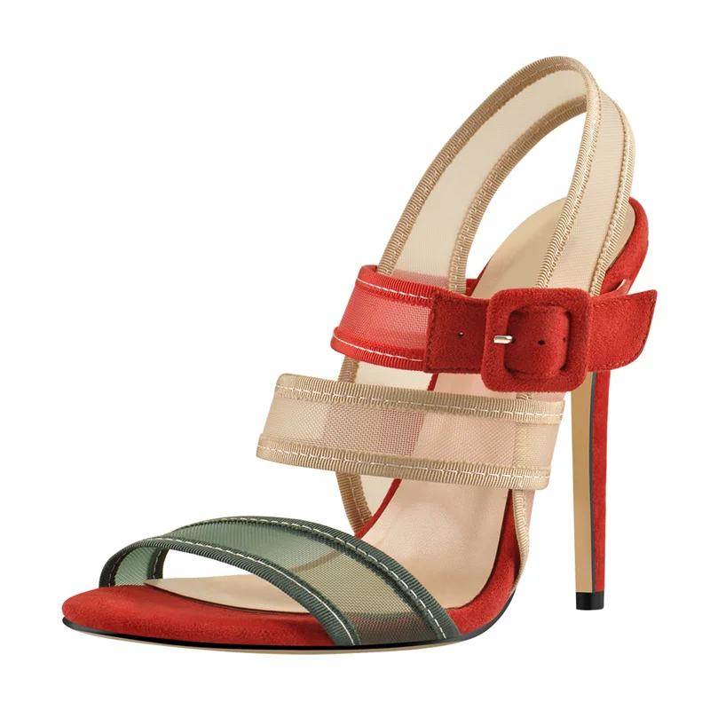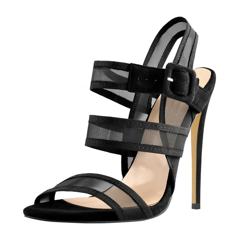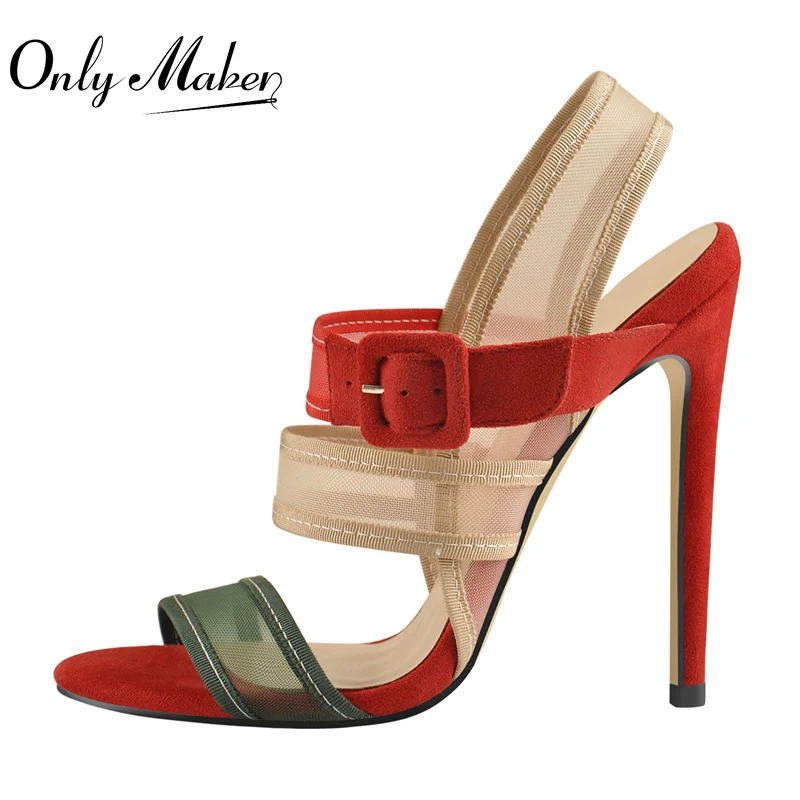 Женские босоножки из флока Onlymaker, черные, красные, на высоком каблуке-шпильке, сетчатые, с пряжкой на щиколотке, с открытым носком, большие размеры, для лета