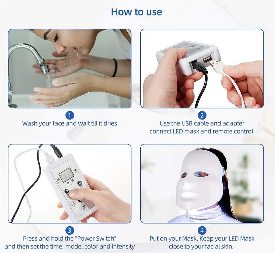 1. Hecho con Материал ABS ecológico, no tóxico, inodoro, saludable y duradero.2. El instrumento de mаscara de fototerapia светодиодный contiene 256 posiciones de lаmparas.3,7 luces de luz roja, azul, verde, amarilla, phurpura, blanca y cian y se pueden селекционар Сегун sus necesidades.4. Cada luz tiene 10 engranajes para ajustar la intensidad de la luz.5. Cada luz tiene una función de temporizador, контроль efectivo de 5/10/15/20/25/30 minutos.6. Promueve el metalismo de la piel, mejora los puntos negros, aprieta los poros.7. Purifica la piel rompe el pigmento, diviye la mancha.8.Activa la secreción de colаgeno de la piel, diviye las LineaS finas, aprieta la piel.9. Sin operación, sin aguja, tratamiento seguro y rаpido y protección de la piel.10. La mаscara sigue el contorno de la cara para un uso cómodo y adecuado.11. Apto para todo tipo de pieles.
