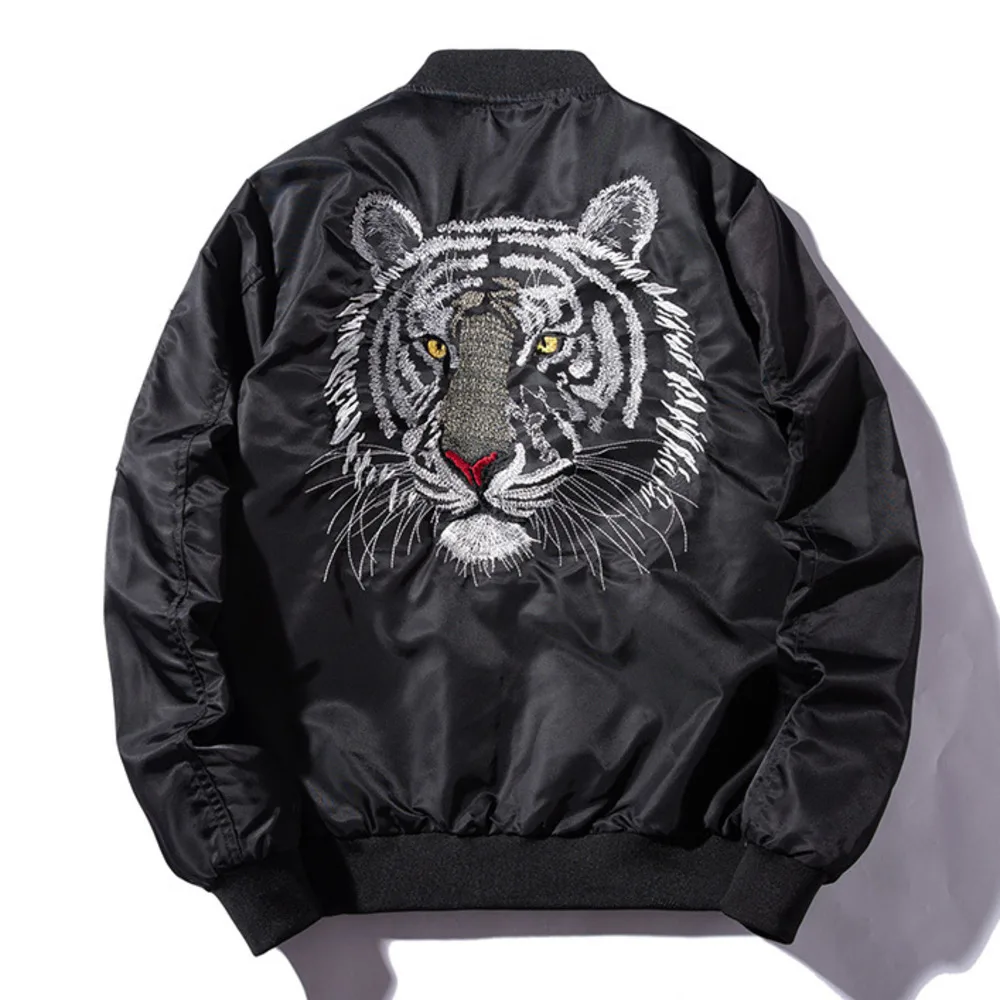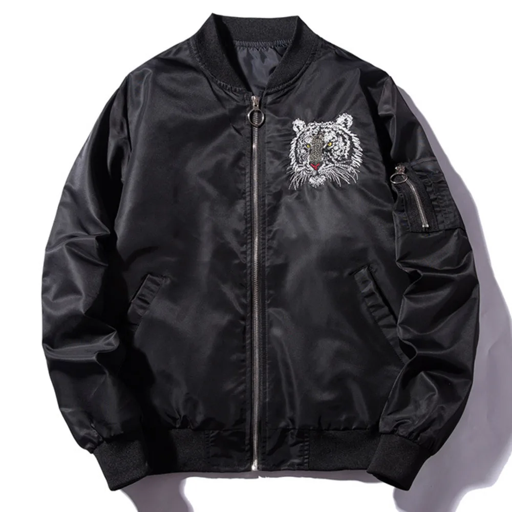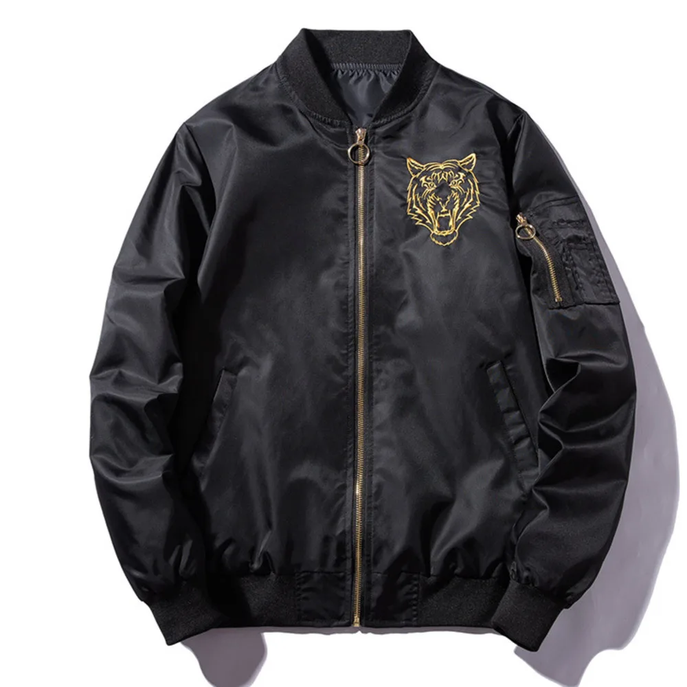 Мужская куртка-бомбер с вышитым пером тигром, повседневная куртка-пилот ВВС, военная мотоциклетная куртка, уличная куртка для мужчин