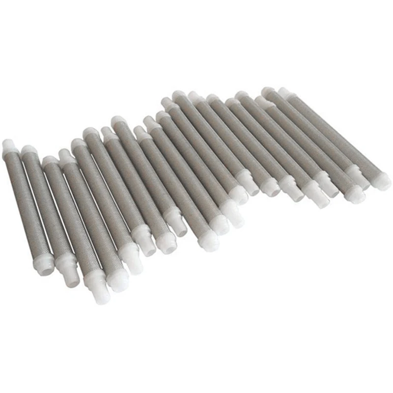 Простота установки и замены.Устойчивы к коррозии и сжатия.Этот Сменный фильтр для пистолета-распылителя удаляет грязь от покрытия, которое защищает насос, уменьшает засорение сопла и обеспечивает лучшее качество.Регулярно меняйте фильтры для продления срока службы насоса и уменьшения загрязнения.Используется для замены надежных партнеров! Безвоздушные фильтр для пистолета-распылителя элементы, принадлежности пистолета-распылителя.Количество: 20 шт.Цвет: белыйМатериал: нержавеющая стальРазмеры: 10 см/3,94 дюймов ДлинаПосылка:20 * безвоздушные распылительные инструменты фильтрТолько вышеуказанная посылка, другие товары не включены.Примечание: светильник и различные дисплеи могут привести к тому, что цвет товара на картинке немного отличается от реального. Допускается погрешность в измерениях +/- 1-3 см.