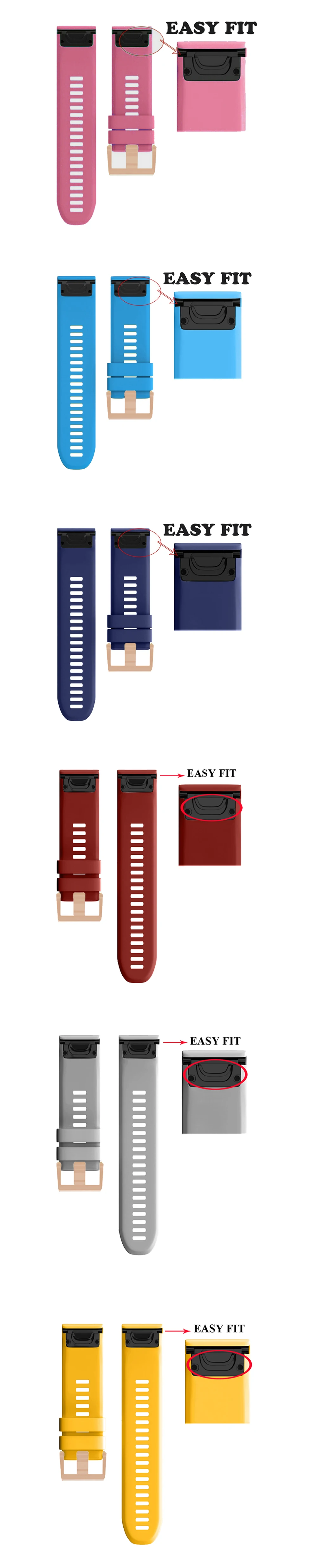 26 22 20 мм ремешок для часов для Garmin Fenix 5X 5 5S 5X Plus 6 6S 6X Pro Смарт-часы быстросъемные силиконовые наручные часы Easyfit