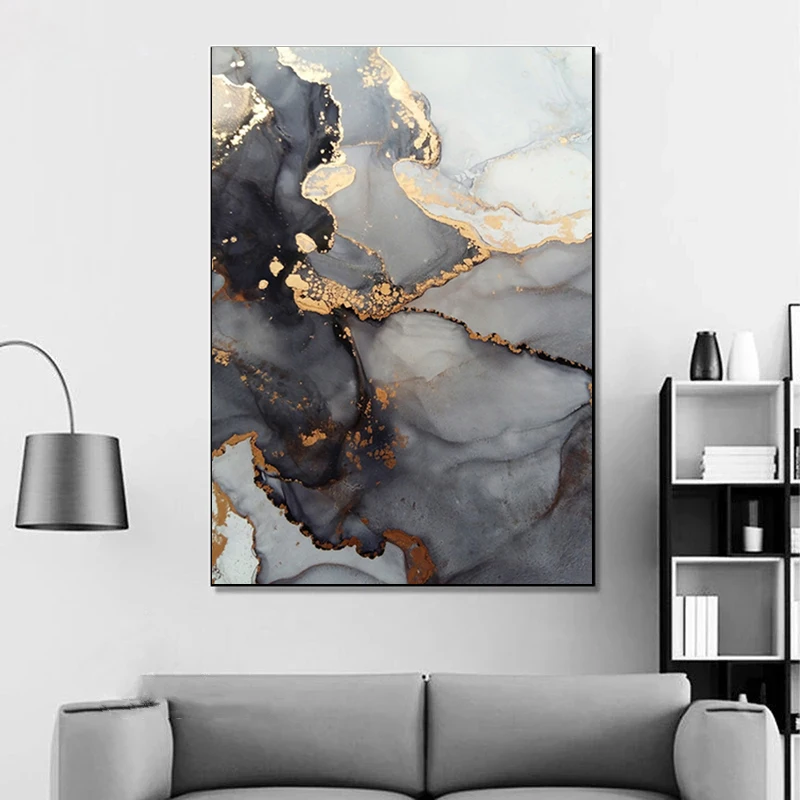 Абстрактная Золотая Роскошная Картина на холсте акварельная картина...