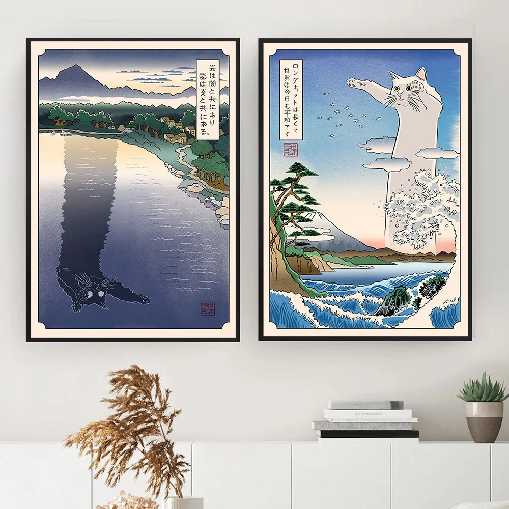 Милый мультяшный черный и белый кот, настенная Картина на холсте, скандинавские постеры и принты, настенные картины для гостиной, украшение для дома