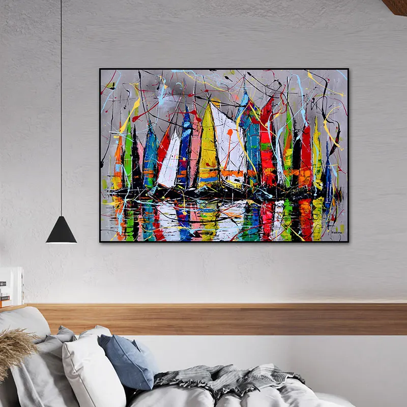 Абстрактная картина маслом красочные граффити плакаты с парусником и фотообои для гостиной домашний Декор без рамки