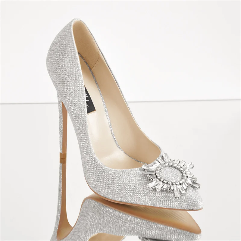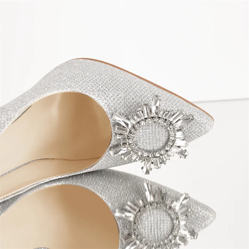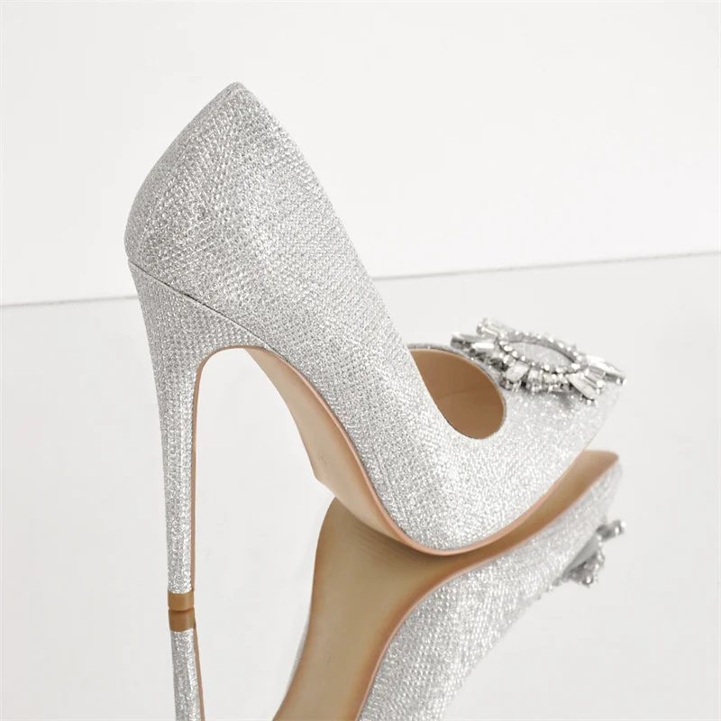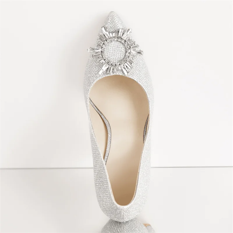 Женские туфли-лодочки Onlymaker без застежек с острым носком, серебристые блестки, геометрические кристаллы, неглубокие туфли на тонком высоком каблуке, элегантные свадебные туфли большого размера