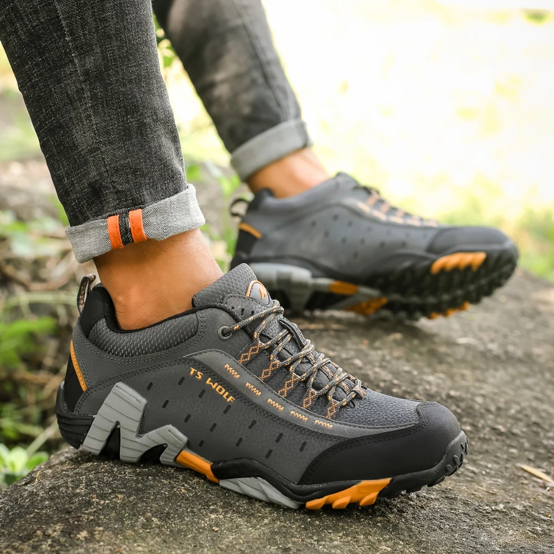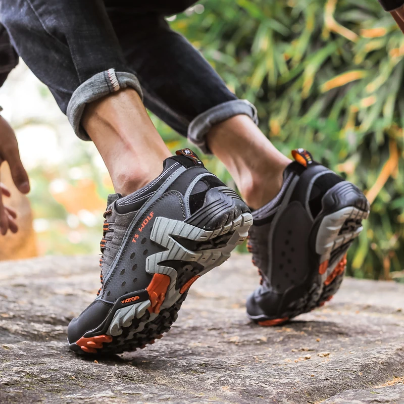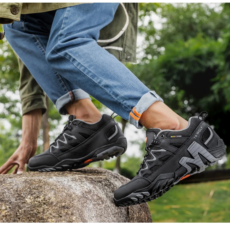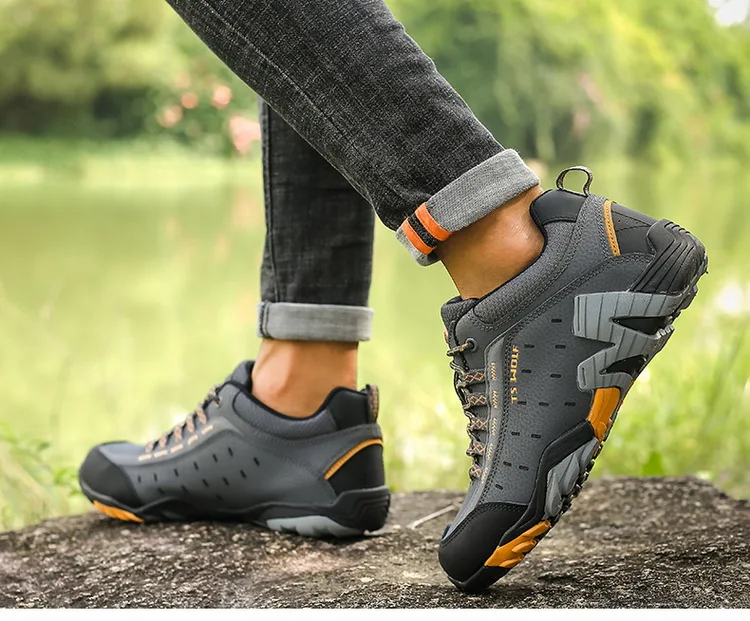 Мужская кожаная Водонепроницаемая спортивная обувь, Нескользящие дышащие походные туфли, уличные туфли для приключений и кемпинга