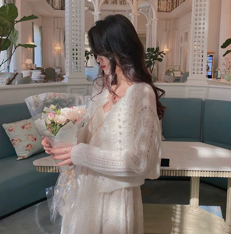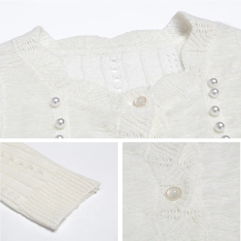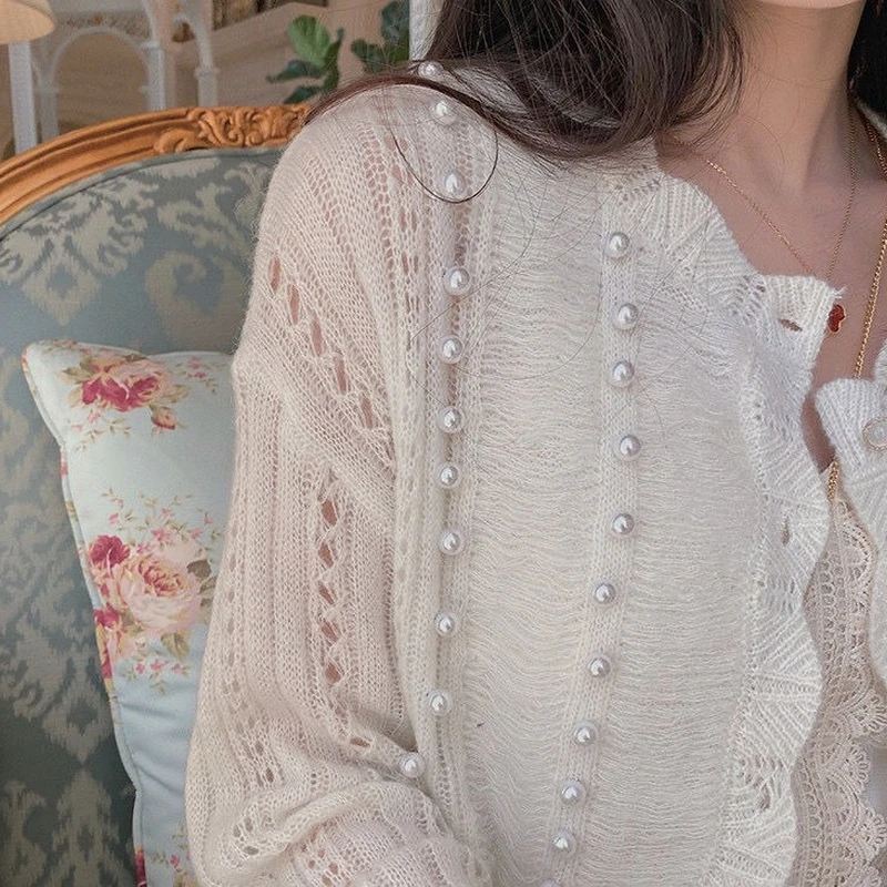 Женский однобортный Кардиган, милый Элегантный Нежный однотонный кардиган в стиле ретро с перламутровыми вставками