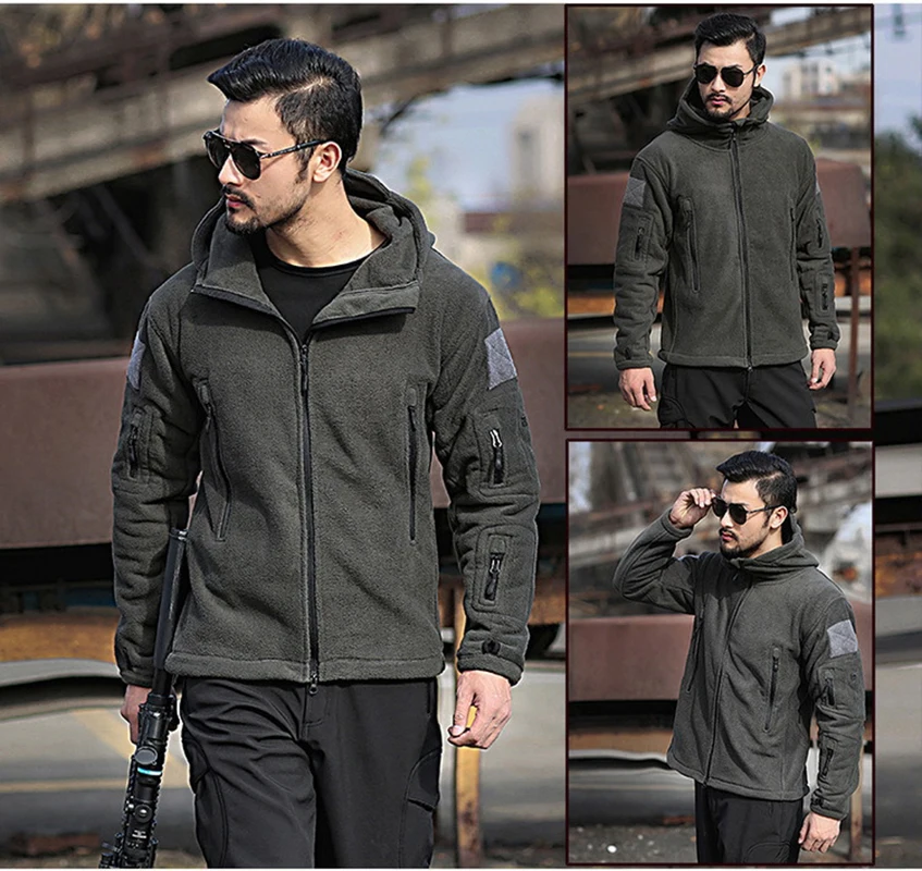 Флисовая Куртка мужская с капюшоном, утепленный дышащий Тактический свитер с флисовой подкладкой, теплая уличная одежда