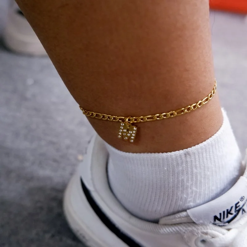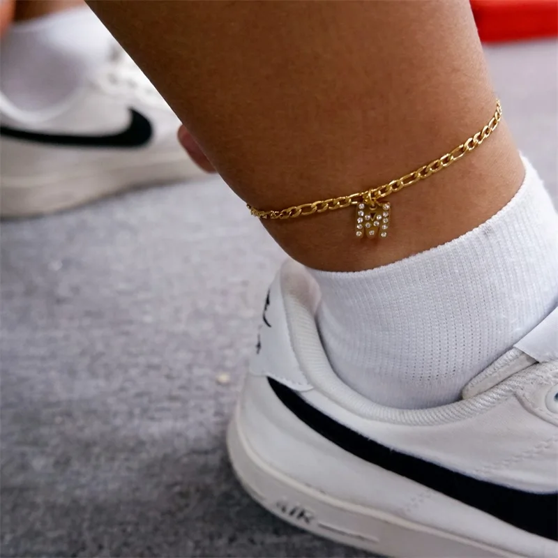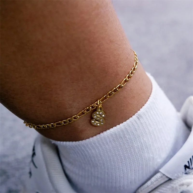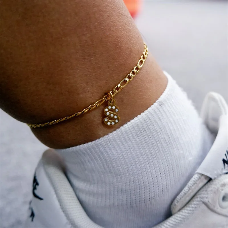 Браслеты на ногу для женщин, ювелирные украшения в стиле бохо, Маленькие искусственные подвески, буквы инициала, нержавеющая сталь, золото, алфавит, кубинский браслет на щиколотку