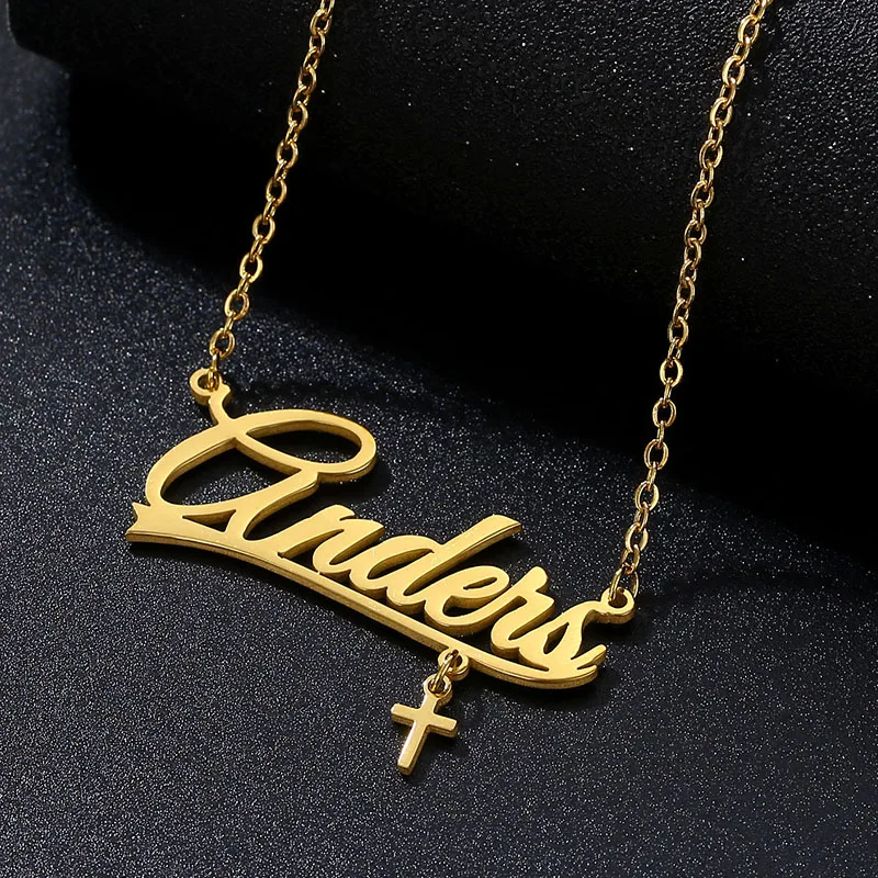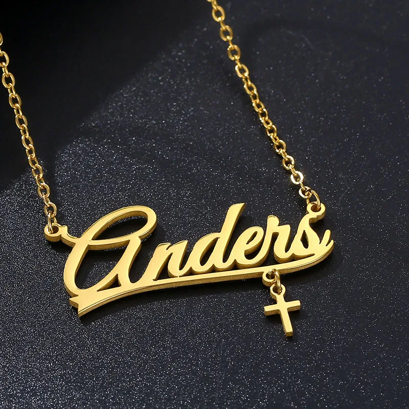 Индивидуальное ожерелье из нержавеющей стали с именем для женщин, индивидуальное Золотое модное ожерелье с кулоном в виде креста с именной табличкой, ювелирные изделия