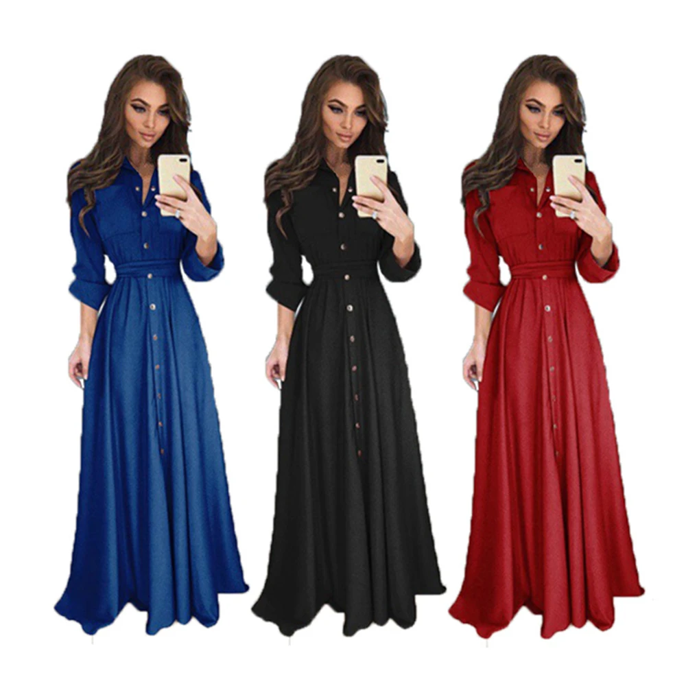 Женское платье на пуговицах OL, длинное вечервечерние платье-рубашк...