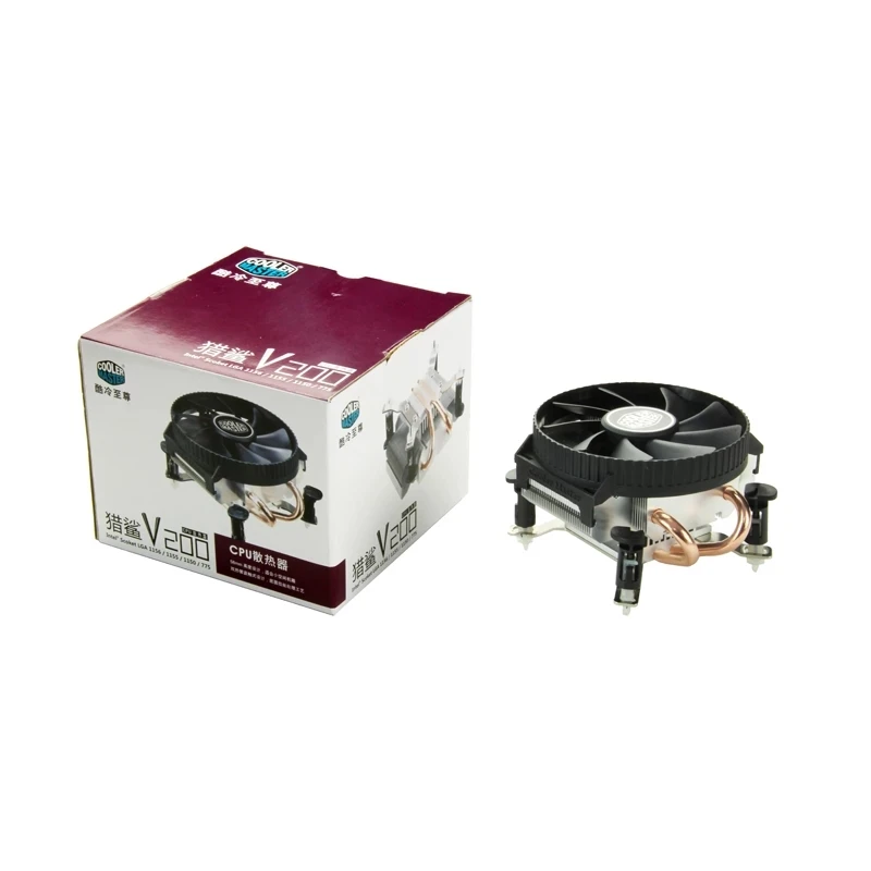 Кулер Master V200 TDP95W с 2 тепловыми трубками, кулер для ЦП 90 мм, тихий охлаждающий вентилятор для Intel 775 1155 1156 1151 M-ATX, радиатор для ПК