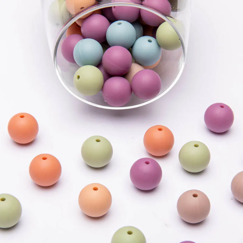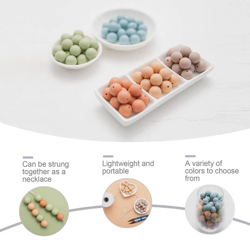 10 шт.лот, силиконовые бусины, круглые Детские Прорезыватели для зубов, игрушка для жевания, подарок ручной работы, цепочка для пустышки, Детские бусины для прорезывания зубов 121520 мм