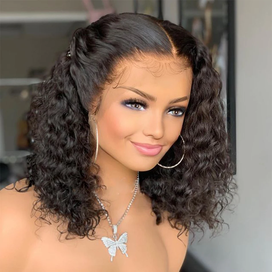 180% Плотность 12 дюймов с тупым вырезом короткие Боб Курчавые Кудр...