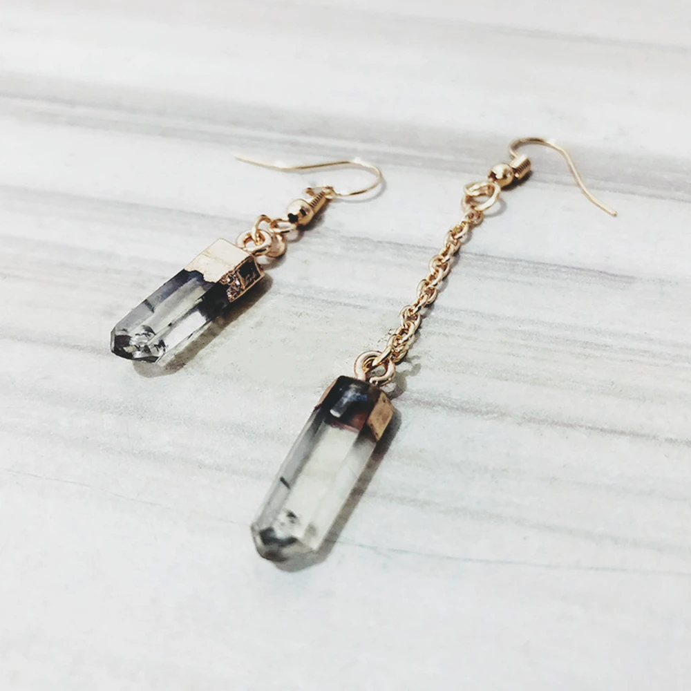 2 шт., кварцевые серьги с натуральным кристаллом, маленькие камни, маятник, колонна рейки, целебные ювелирные изделия, белые кварцевые свисающие очаровательные серьги для женщин