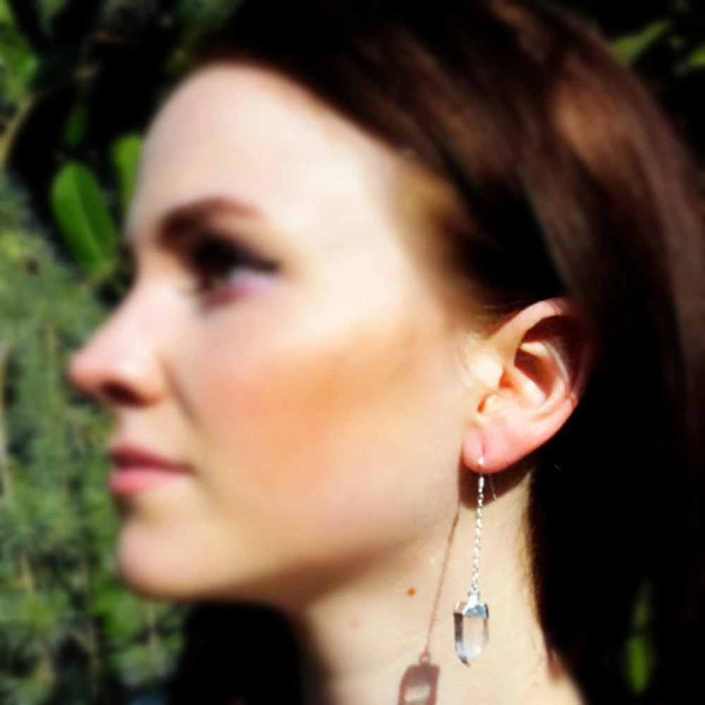 Серьги с натуральным кристаллом кварца, 2 шт., маятниковая колонна с маленьким камнем, Исцеляющие ювелирные изделия рейки, белый кварц, свисающие очаровательные серьги