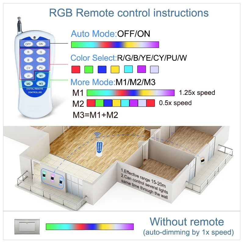О: Режим RGB имеет 7 различных цветов на выбор.Пульт дистанционного управления может удаленно управлять изменением цветовой температуры, но автоматический не может.