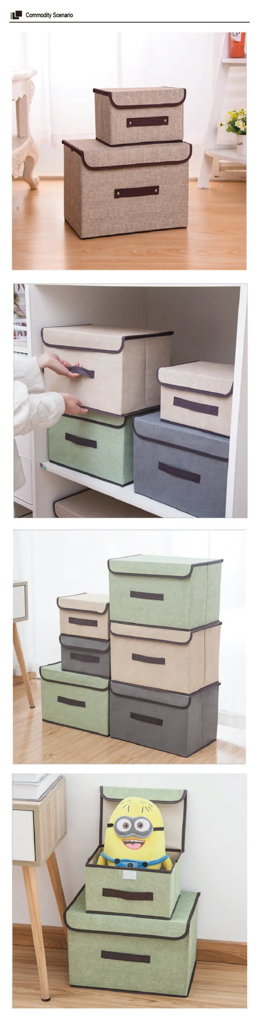 Ящик для хранения из хлопка и льна с крышкой, одеждой, носками, игрушками, закусками, органайзером, Набор тканевых коробок, косметика для дома, 2 размера