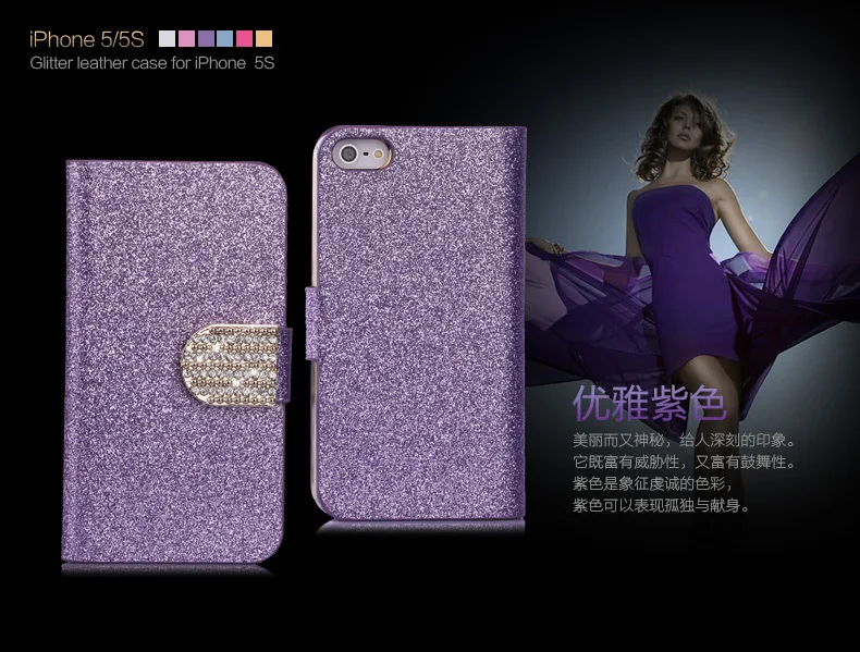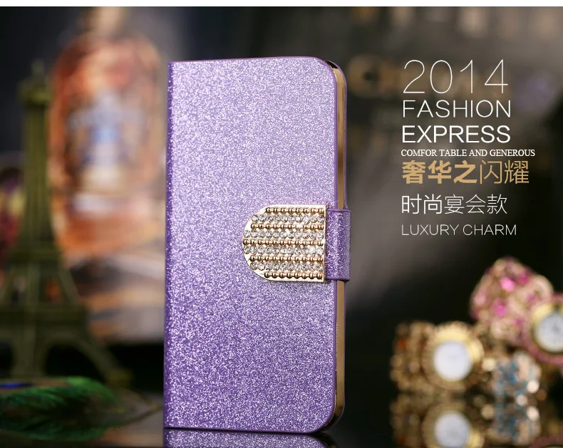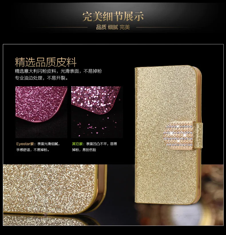 FeatureLuxury Flip Magnet PU Leather Shiny Glitter Case