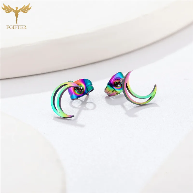 Женские серьги-гвоздики с полумесяцем, серьги из нержавеющей стали,...