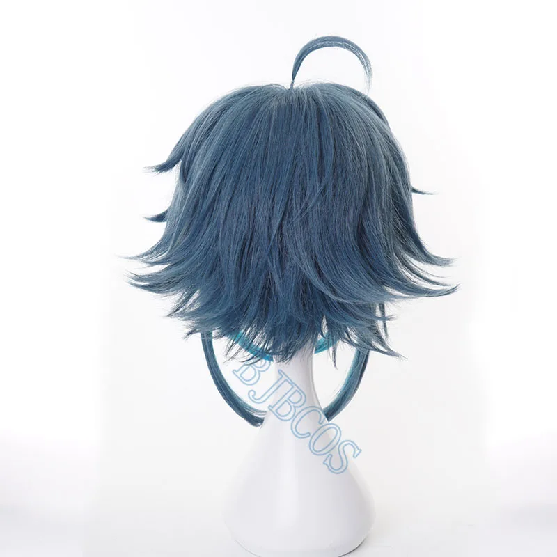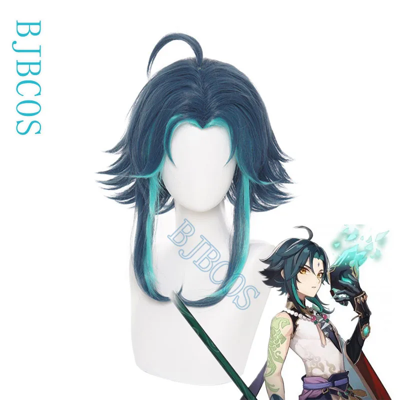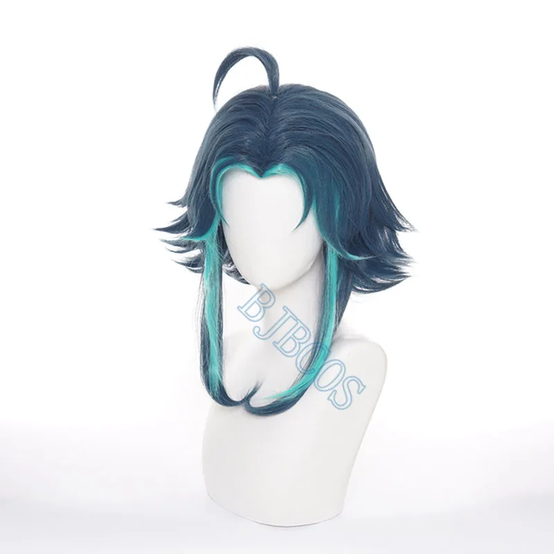 Парик для косплея Game Genshin Impact Xiao смешанный темно-зеленый синий короткий термостойкий синтетический ворс парики для ролевых игр на Хэллоуин + парик