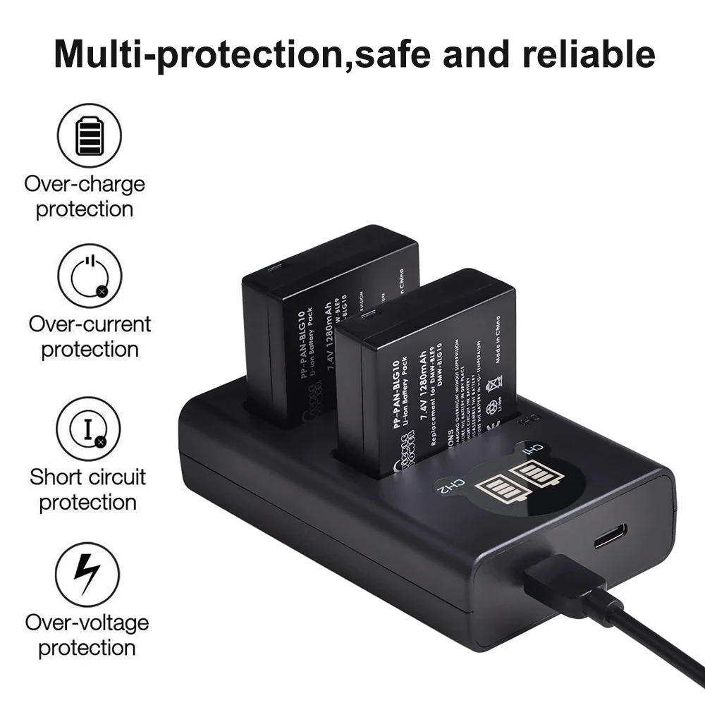 DMW-BLG10 DMW BLG10E BLE9E DMW-BLE9 аккумулятор + двойное зарядное устройство с портом Type-c для Panasonic Lumix LX100 GX7 TZ90 TZ100 GF6 GX80