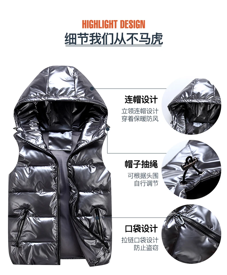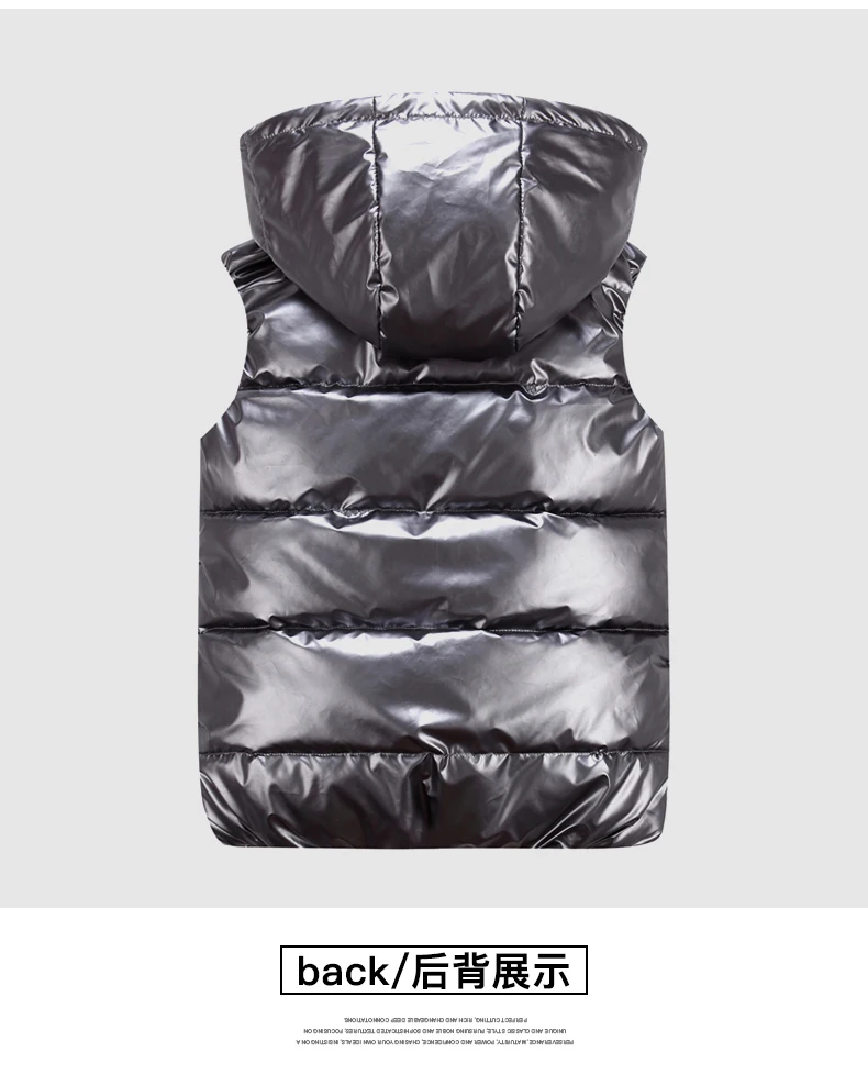 Жилет мужскойженскийдетский, зимний глянцевый хлопковый жилет с кап...